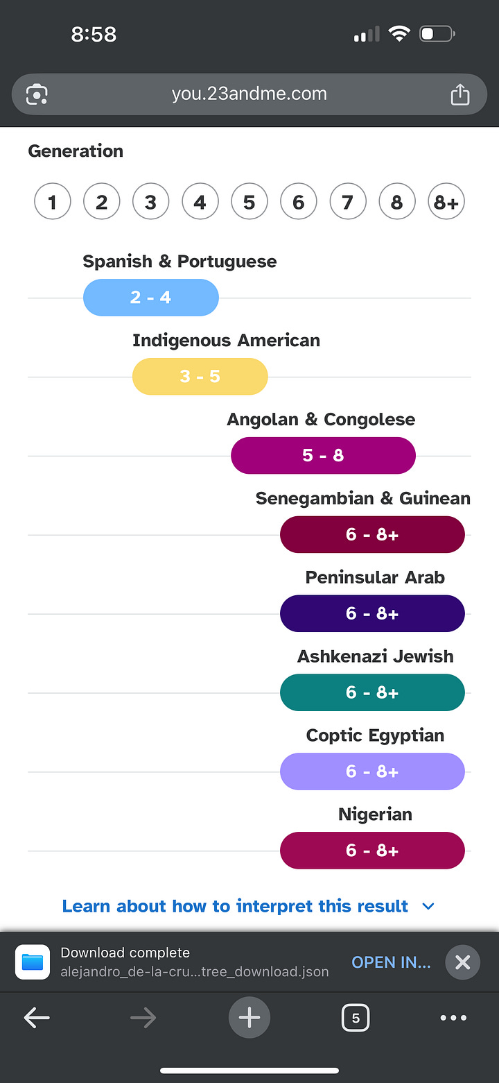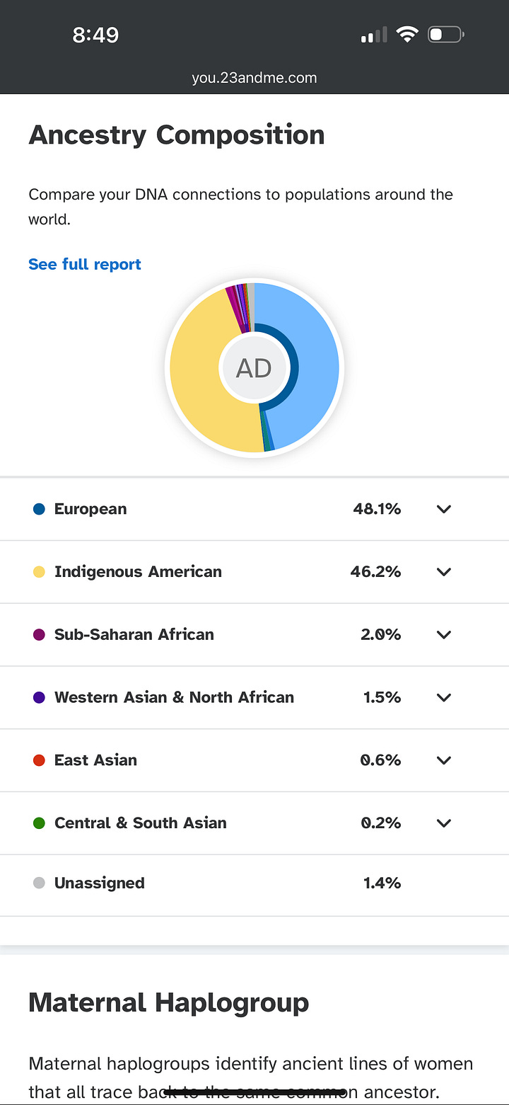 Way back in my DNA, there are stories with only distant signals of something happening. An entire galaxy of interconnected worlds between indigenous American and Ashkenazi Jew waving back like light from billions of lightyears away. I don’t know what it means to be more recently European than indigenous or if any of these other insignificant percentages, likely flawed by a company now bankrupt, say anything about who I am. But honestly, I’m kinda super curious about the whole Coptic Egyptian thing. Like…direct descendants of Ancient Egyptians, my last name is De La Cruz (of the cross). Talk about fodder for some novels.
