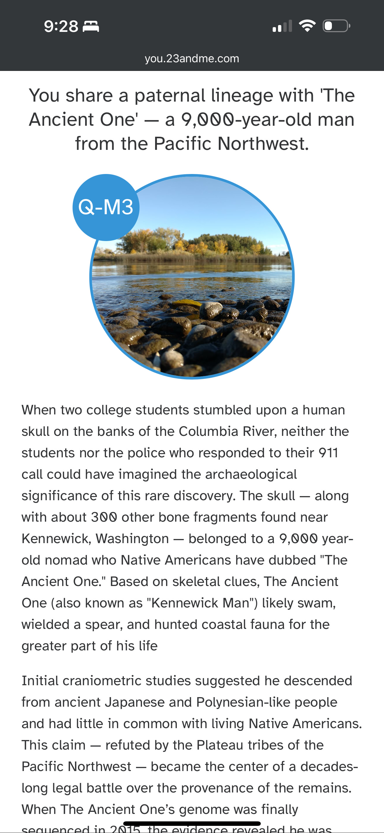 As I stumbled around the website, with information that’s been there for years, I came across another interesting tidbit. I might be related to “The Ancient One”, a 9000-year-old man from the Pacific Northwest. Well, ain’t that some shit. With a deep yearning for desert landscapes and ready to get all Aztec when the time is right, this guy might be from the area I currently live in, which I don’t always speak highly of. This place that sometimes feels as foreign as any place I’ve ever lived seems to be a distant star waving back, except I might have returned to an origin star.
